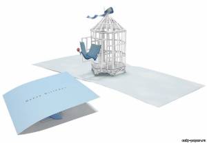 Сборная бумажная модель Птица вылетающая из клетки / Birdcage (Объемная открытка)