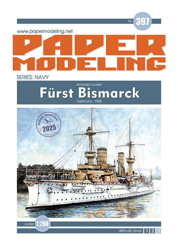 Уважаемые моделисты! Планируется к выходу очередная новинка. К сожалению в этот раз она будет только одна - №397 Броненосный крейсер «FÜRST BISMARCK». Германия 1900 г. Автор - А.Дрыбник