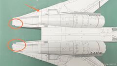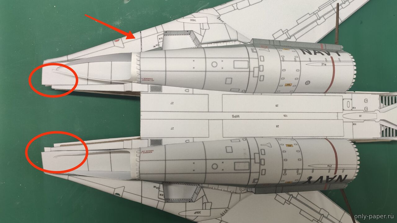 При установке этого дела на корпус столкнулся с проблемой. Прошу помощи, может у кого есть опыт сборки этого аппарата, в носовой части воздухозаборники не сходятся с верхней частью фюзеляжа -обведено окружностью, на стыках деталей образовалась щель- стрелки.