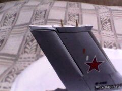 | Установил оперение. Для придания жесткости крепления сделал из зубочисток. Для стабилизатора тоже сделал двойной лонжерон из зубочискот, на которые надел обе его половинки.