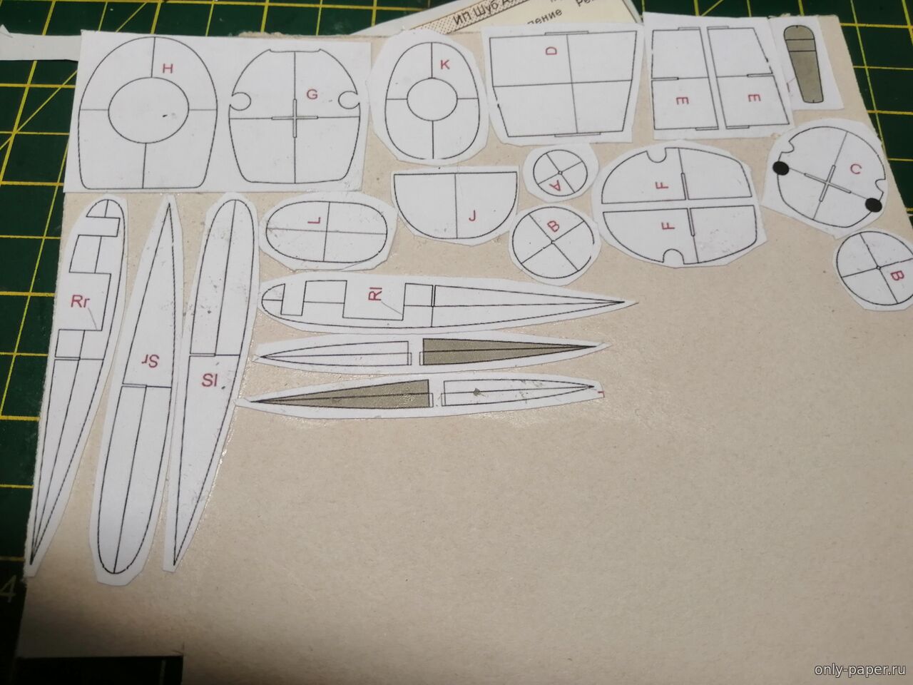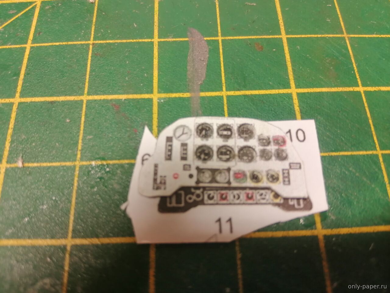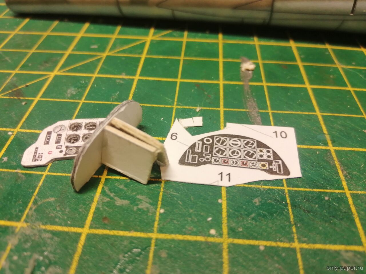 | Еще раз всем привет! Выходные прошли в работе и семейных хлопотах, собрать за пару дней не удалось) Тем не менее... Начал с кабины пилота. Сама выкройка (деталь №1), дана на плотной бумаге. Не удержалься, подклеил миллиметровым картоном пол и заднюю стенку.