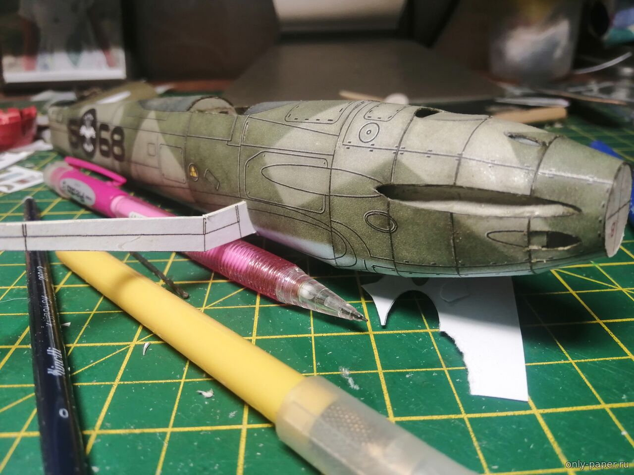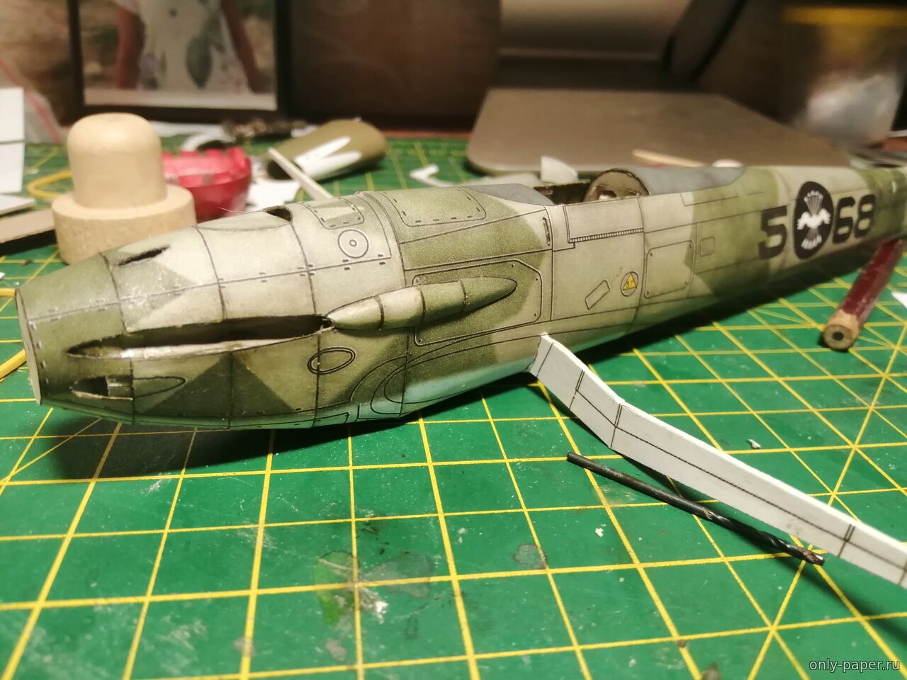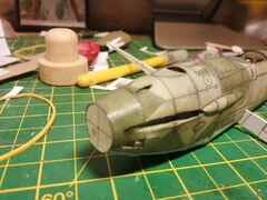 Чуть поторопился наверное в обтекателем пулемета. Нужно аккуратнее срезать обводку и дождаться полного высыхания всей детали до его монтажа на фюзель