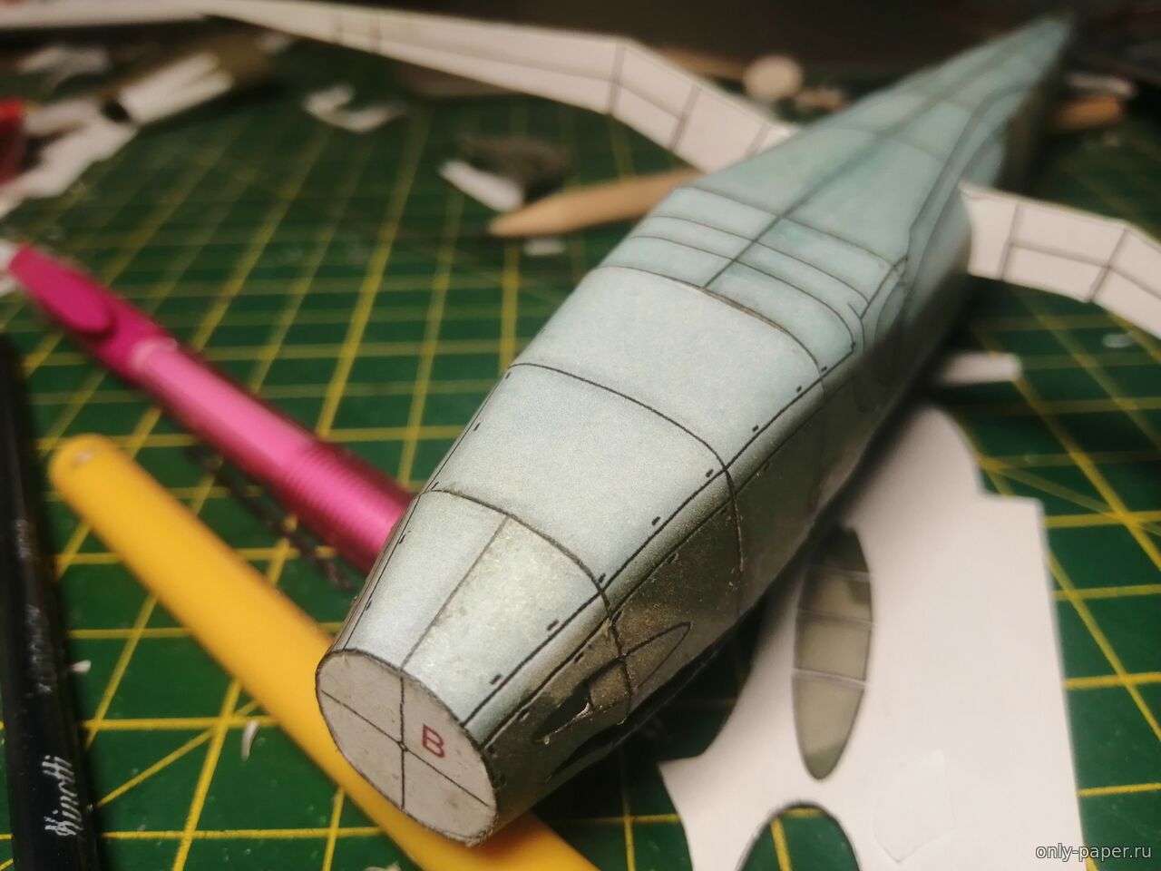 Вехнюю часть, которая с портами, сначала склеил, а потом на ложке уже вырезал порты. Продолжение следует...