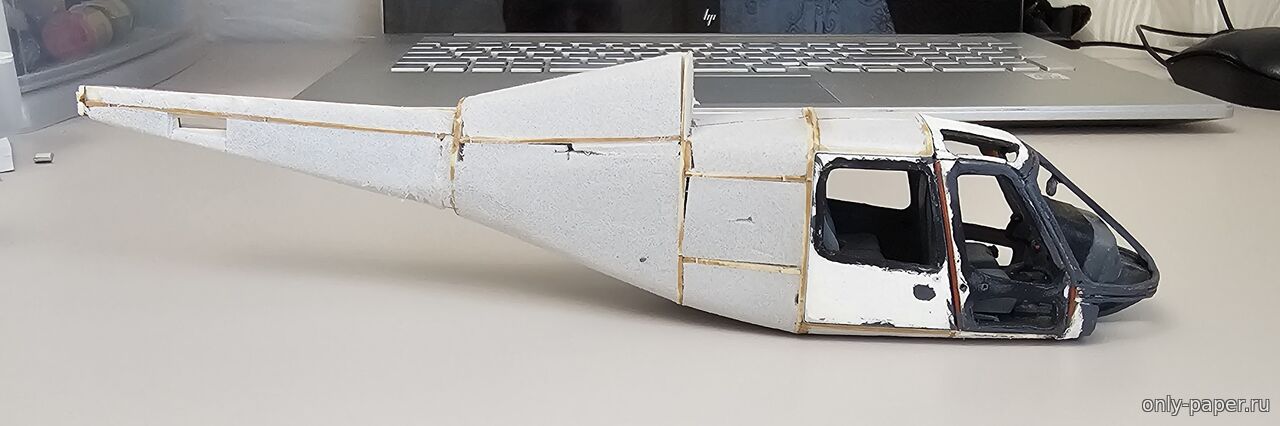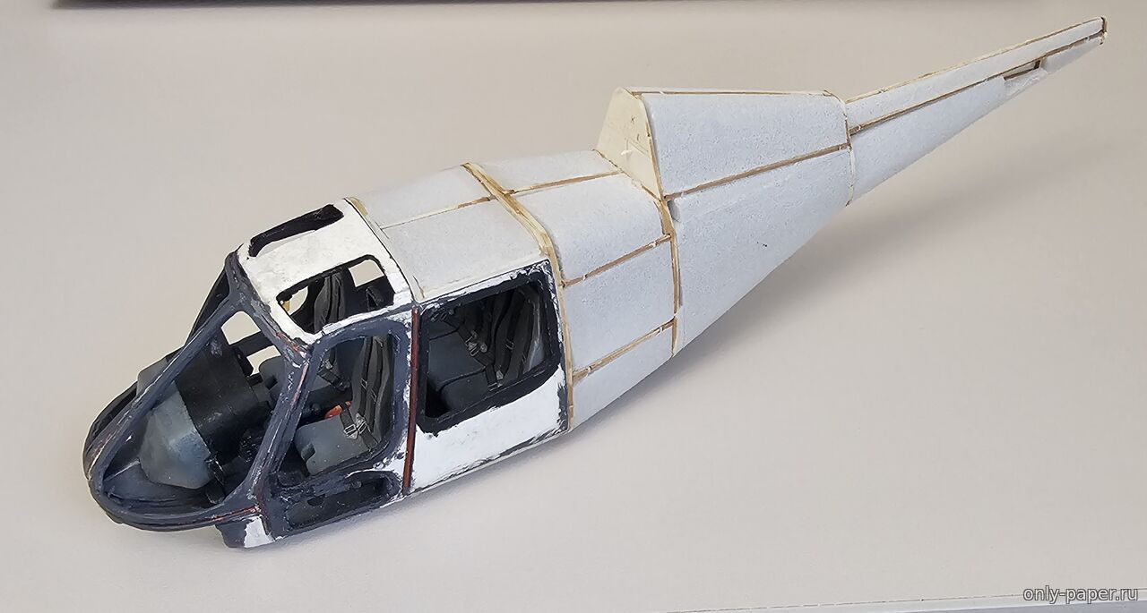 | От себя добавил гироскоп и еще одну маленькую белую панельку с кнопками. Не знаю для чего она там предназначена. Подготовительный этап по корпусу и интерьеру завершен. На очереди остекление кабины и чистовой обшив.
