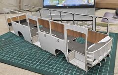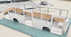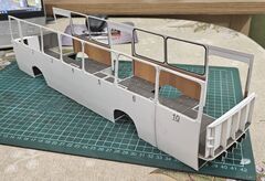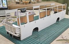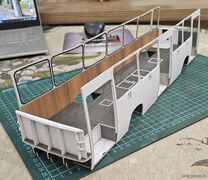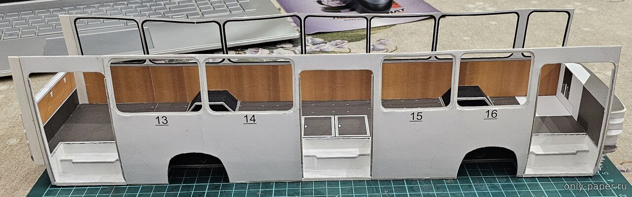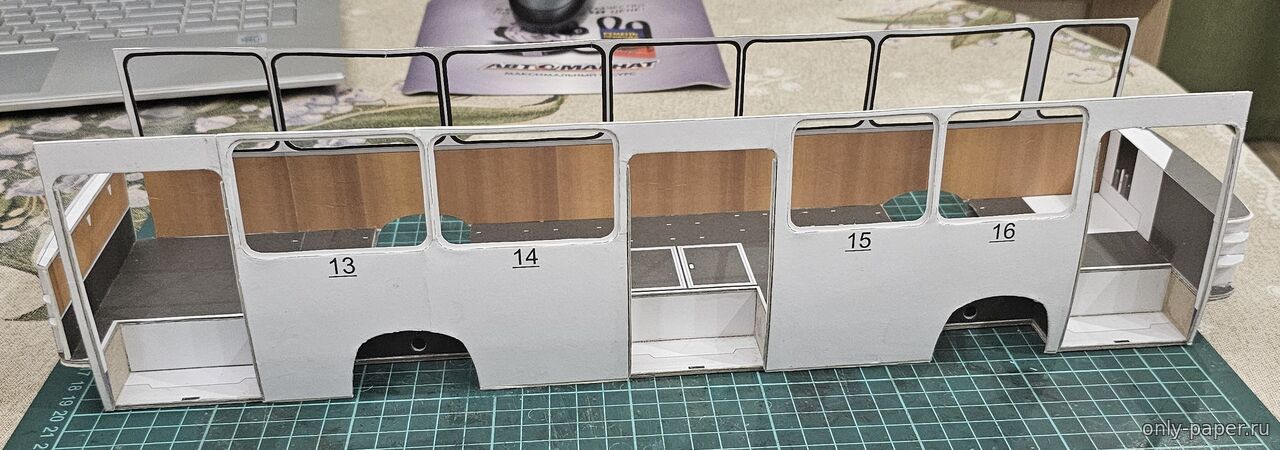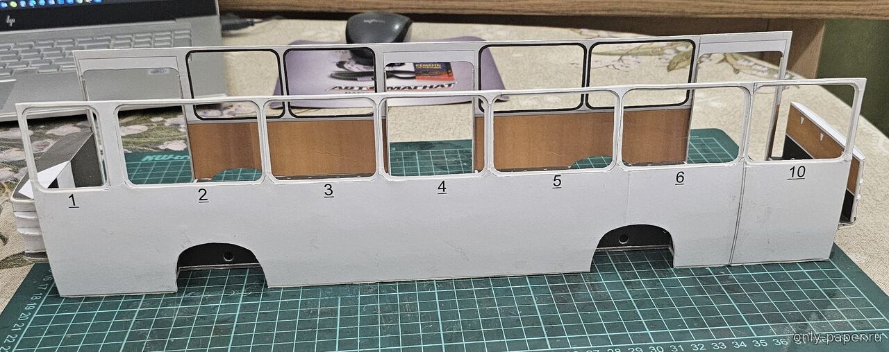 | Продолжение сборки. Выгнал габариты корпуса автобуса. 44 см выходит по длине. Коврик А3 занял так спокойно.