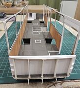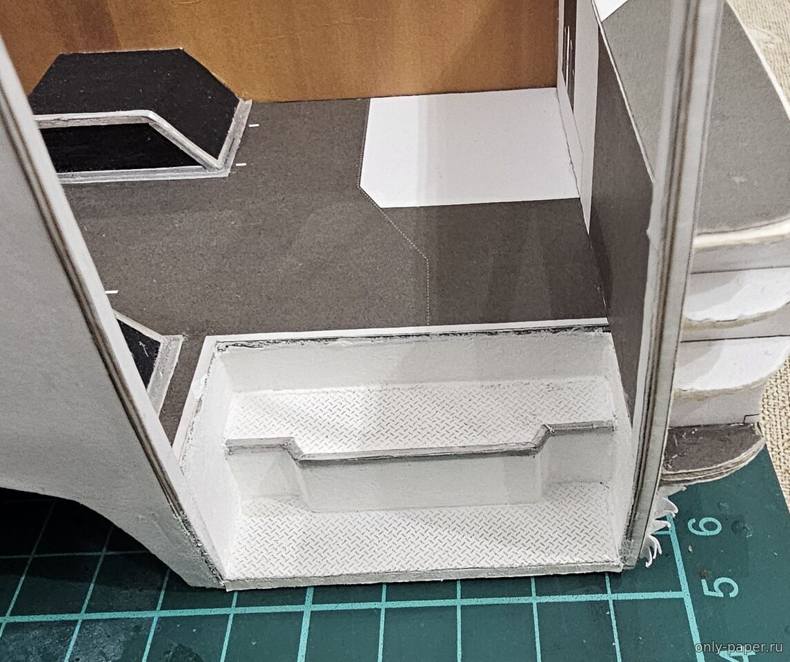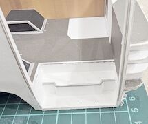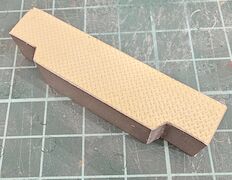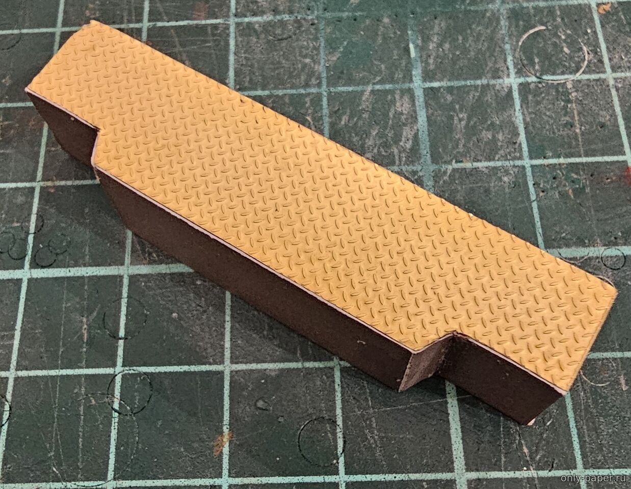 | Поработал со ступеньками. Они стали рифлеными, как и положено. Материал- рифленый лист травленки с ячейками "Чечевица" в масштабе. Окрас+везеринг. Установил ступеньги на места.