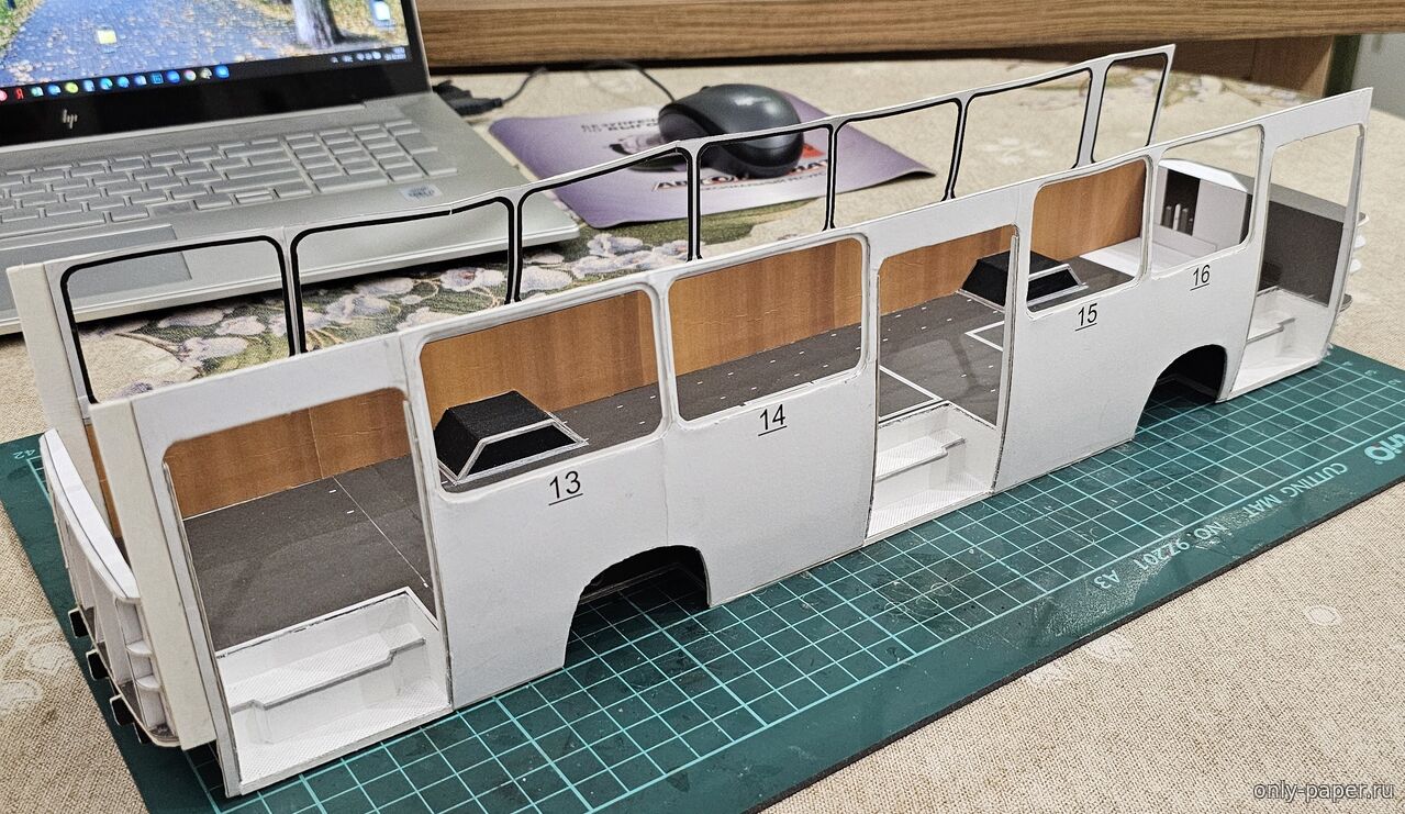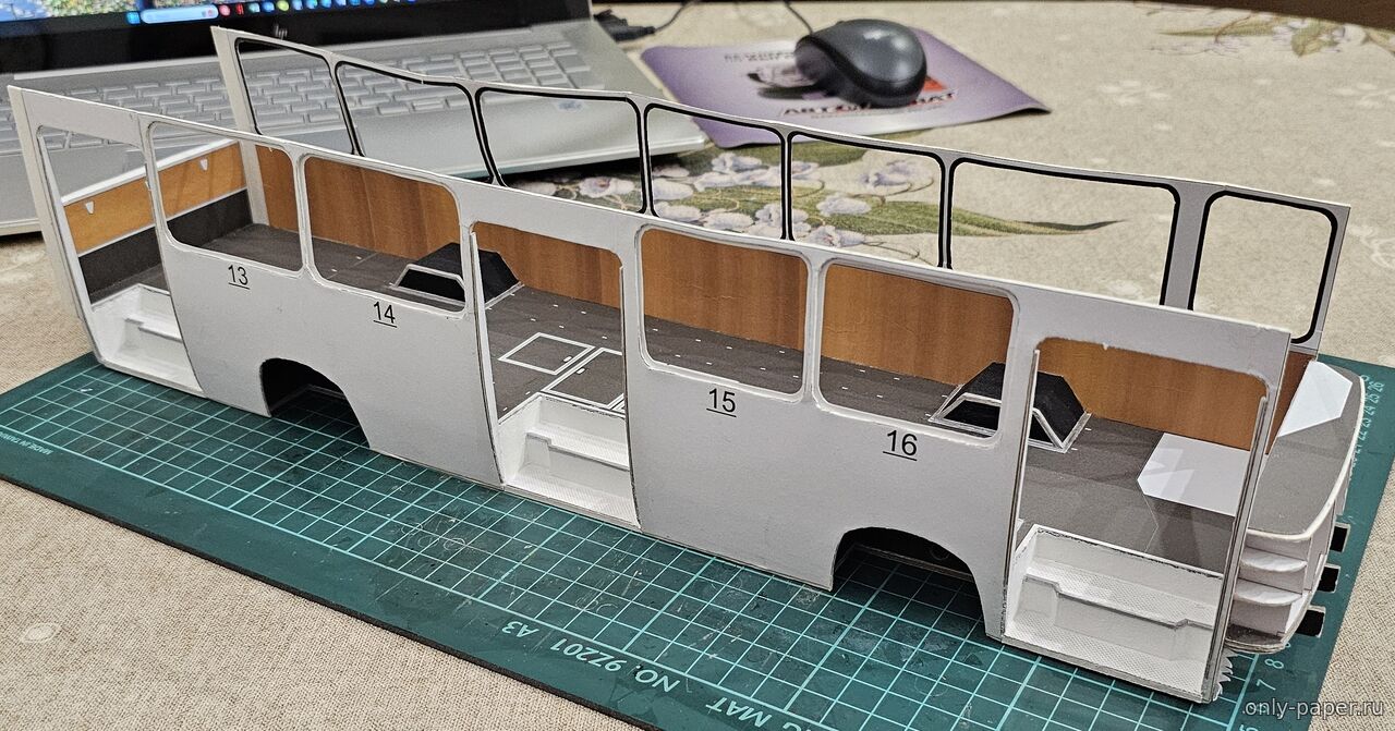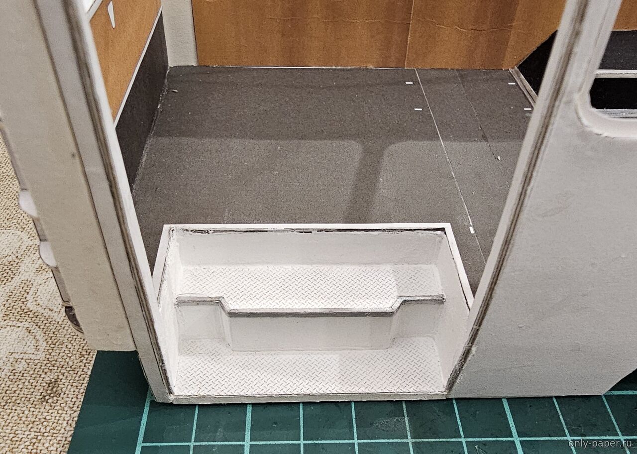 Прошелся по периметру местами для прочности пеноплексом. Большой недостаток разработчика- полное отсутствие снизу элементов силового каркаса и механизмов управления ( двигатель, трансмиссия, гидравлика и т.д). В общем пока проба пера, насколько хорошо идет изжурнальная сборка. Тренировка на кошках. Возможно на сл. автобусах уже будет изготовление с нуля недостающих деталей. Короче пока так оставляем. Продолжение следует.