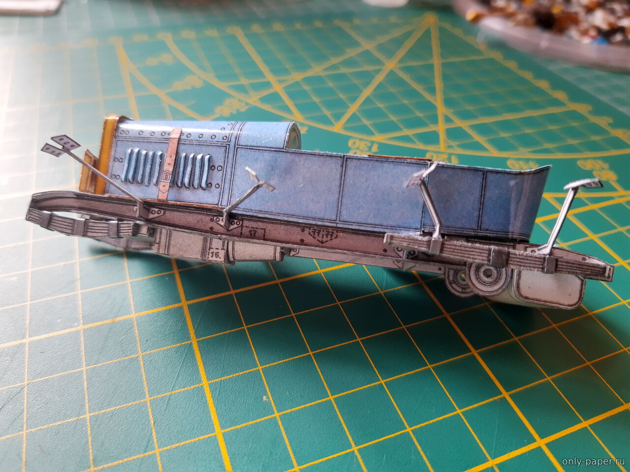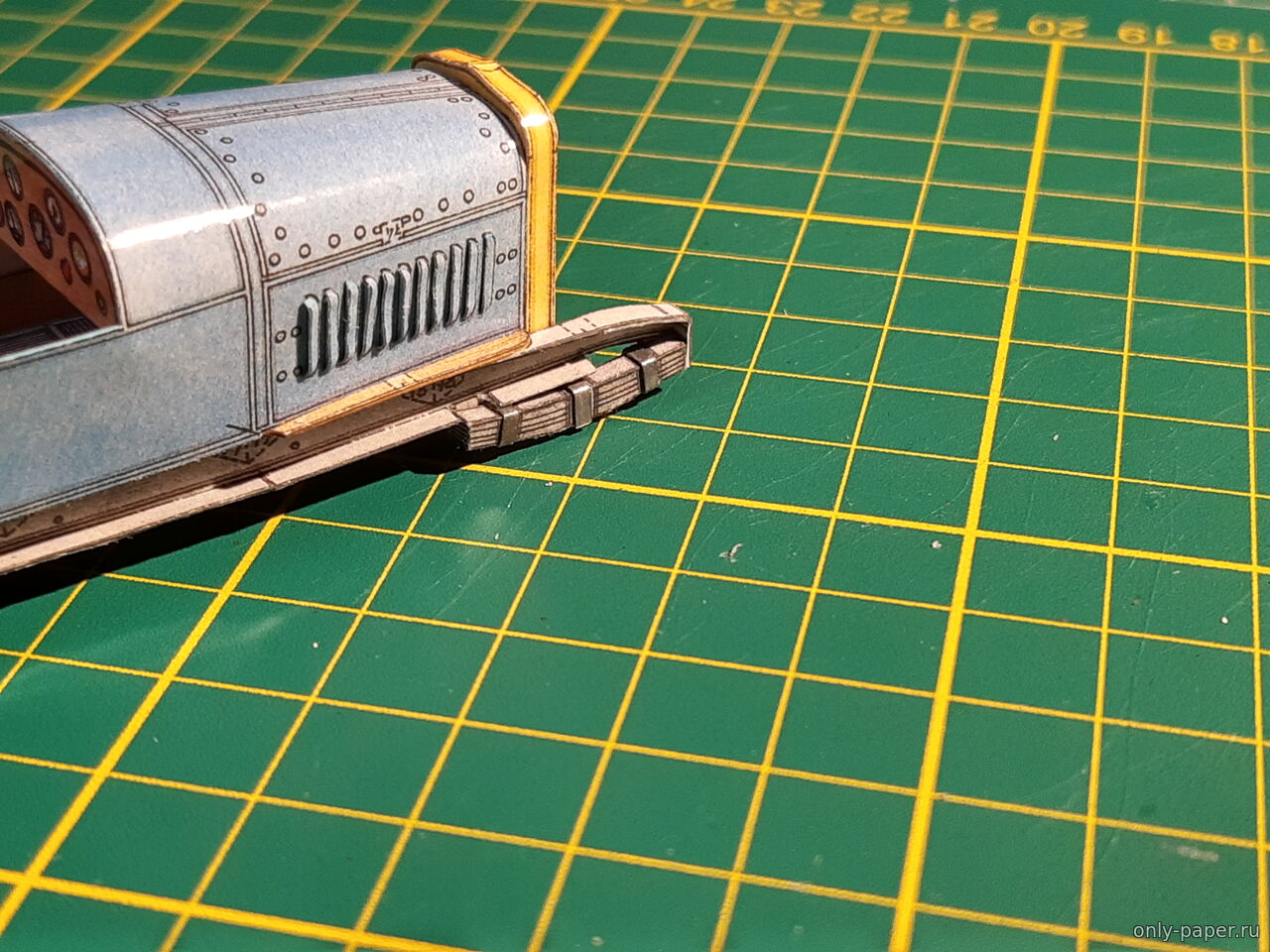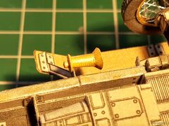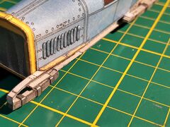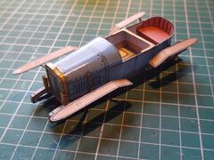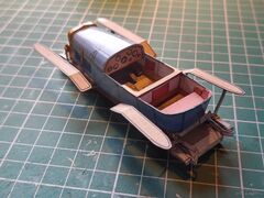 | Доброго времени суток, коллеги. Небольшое продвижение по проекту. Поставил колеса. Сделал их вращающимся. Не знаю плохо это или нет, но что есть, то есть. Начал обвешивать мелочевку. Приклеил фары, пробку радиатора и цилиндр сгущённого воздуха. Пока все выгладить как-то так: