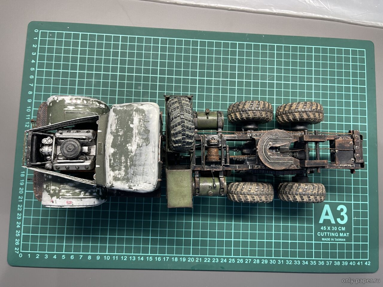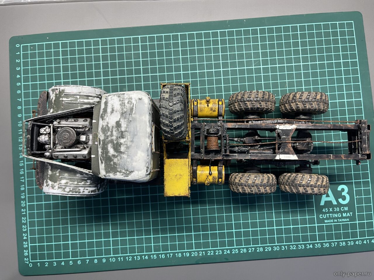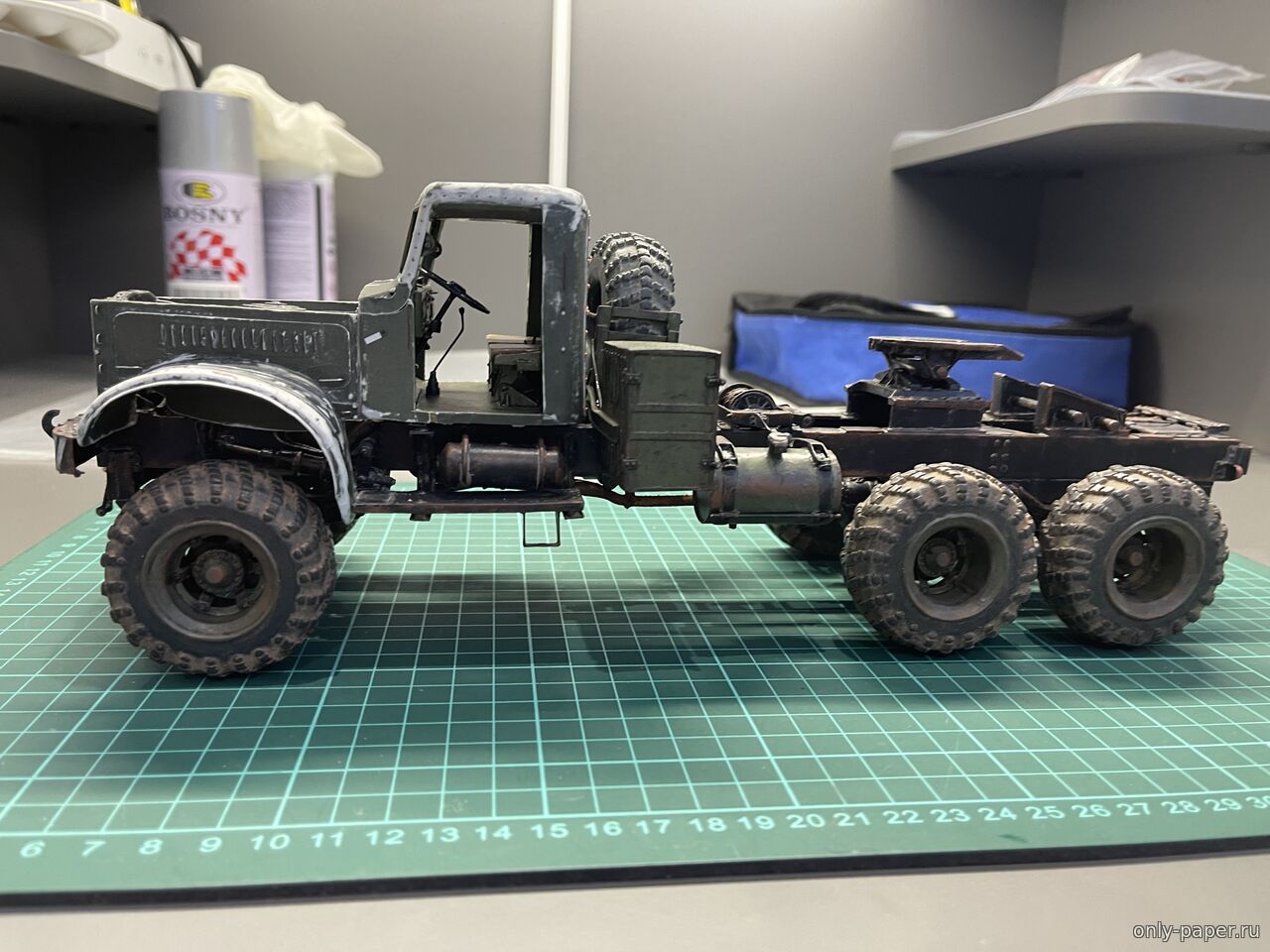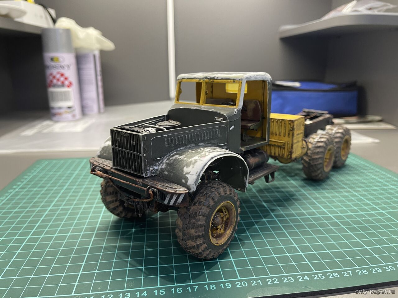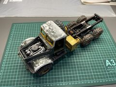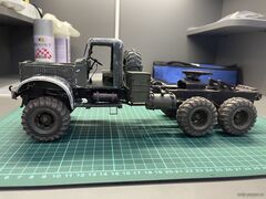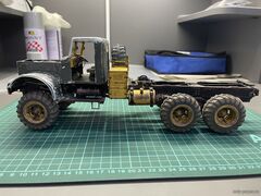 | Добрый День! В своё время пожопился купить журнал, зато заказал резку колёс. Теперь стоит такой, с тентом. Спасибо, подвеску переделывал неоднократно, инструкция не всегда однозначна, смотрел на Вашу сборку, очень помогало. Через полгода хочу попробовать вариант с экскаваторной кабиной. Удачи в сборке!
