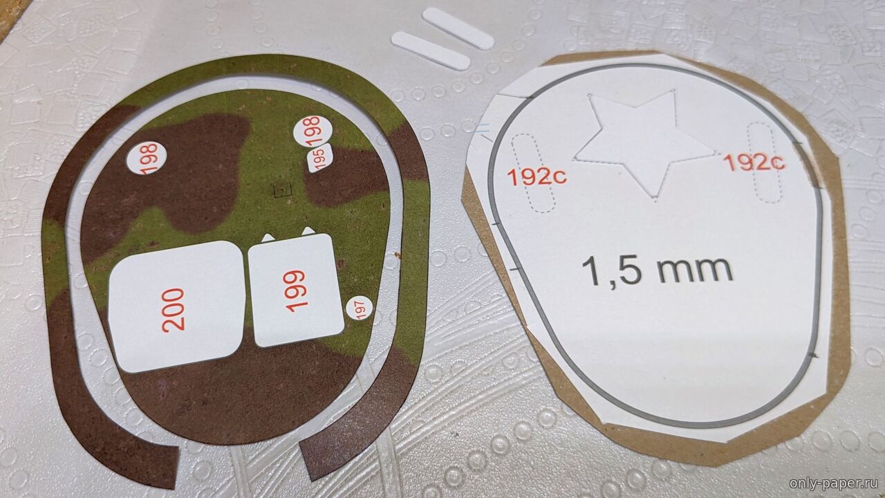 | Далее решил взяться за башню, т.к. была идея сделать танк с нутрянкой, то было принципиально понять смогу ли собрать башню без каркаса. Особенность в том, что на крыше у Т-28 есть выштамповки (звезда и 2 "овала"):