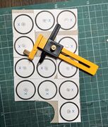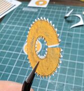 Ну и немного про технологию. Бандажи предварительно наклеиваются на 0,5 мм картон, ножом их резать замучаешься. Поэтому для вырезания внутреннего круга я использовал циркульный нож. Чтобы игла не болталась, в центр капнул суперклей.