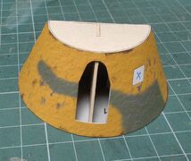 Далее сделал маску пушки по шаблону. Внутренний слой по краям зафиксировал модельным скотчем, после этого наклеил наружный слой.