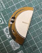 Вот эта окантовка внушала опасения, долго думал, с какой стороны к ней подойти. В итоге решил вырезать шаблон из картона и согнуть деталь по нему. Поперечины приклеивал суперклеем.