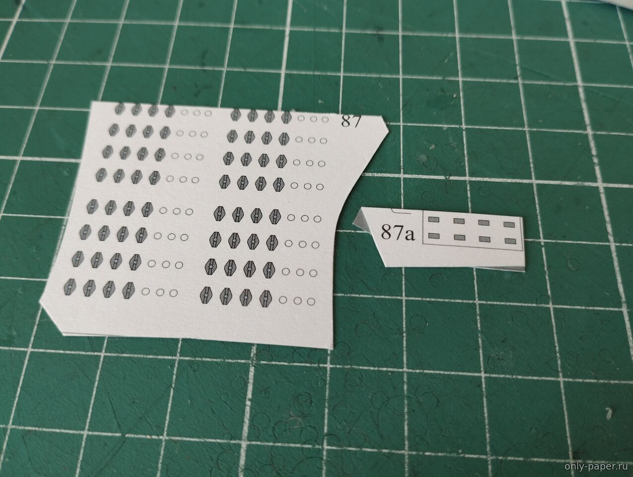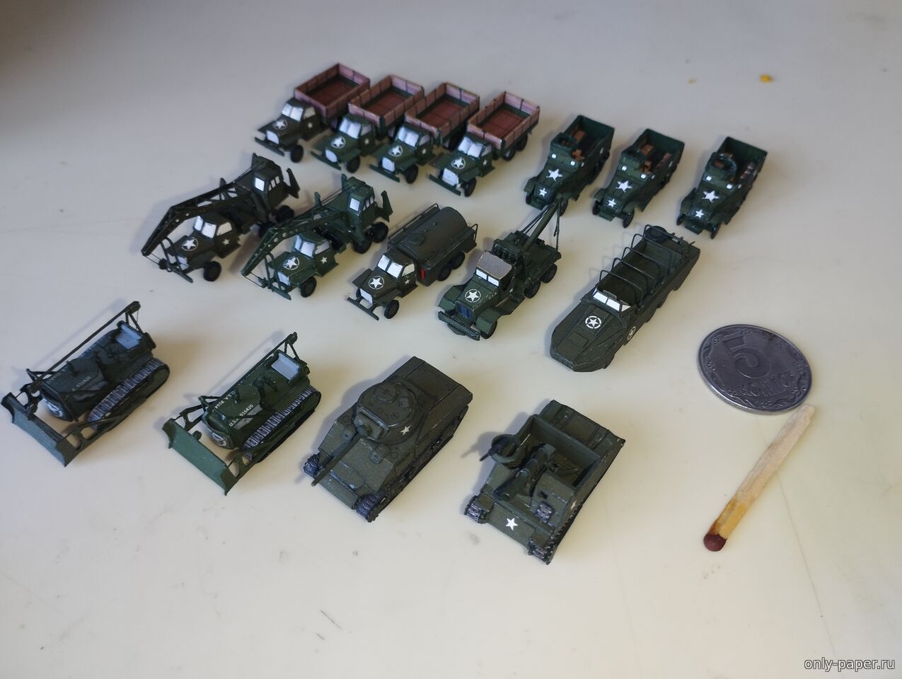 | Цитата steamer (  ) Техника в 1/200 очень хороша, откуда развертки? Сколько уже времени ушло на сборку? Часть разверток с сайтов подобных этому. Модели в 43, 72 и 100 масштабах адаптированные под 200. Бочку на Студебекер, кран Блейхерт и бульдозер рисовал сам по чертежам. Само сабой, с упрощениями для 200 масштаба. Работа по поиску моделей техники начата еще лет 10 назад. Сам корабль заложен в этом году.