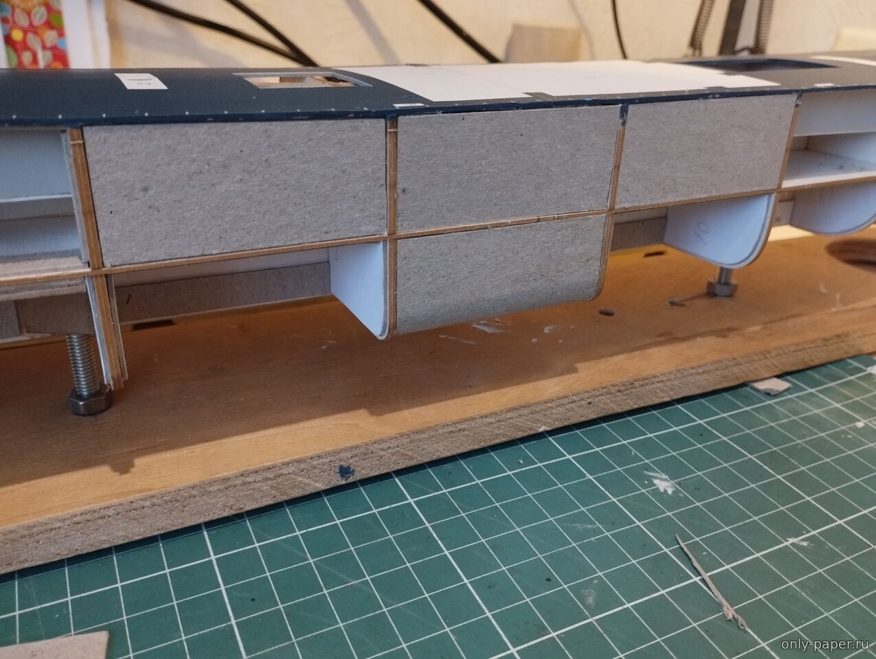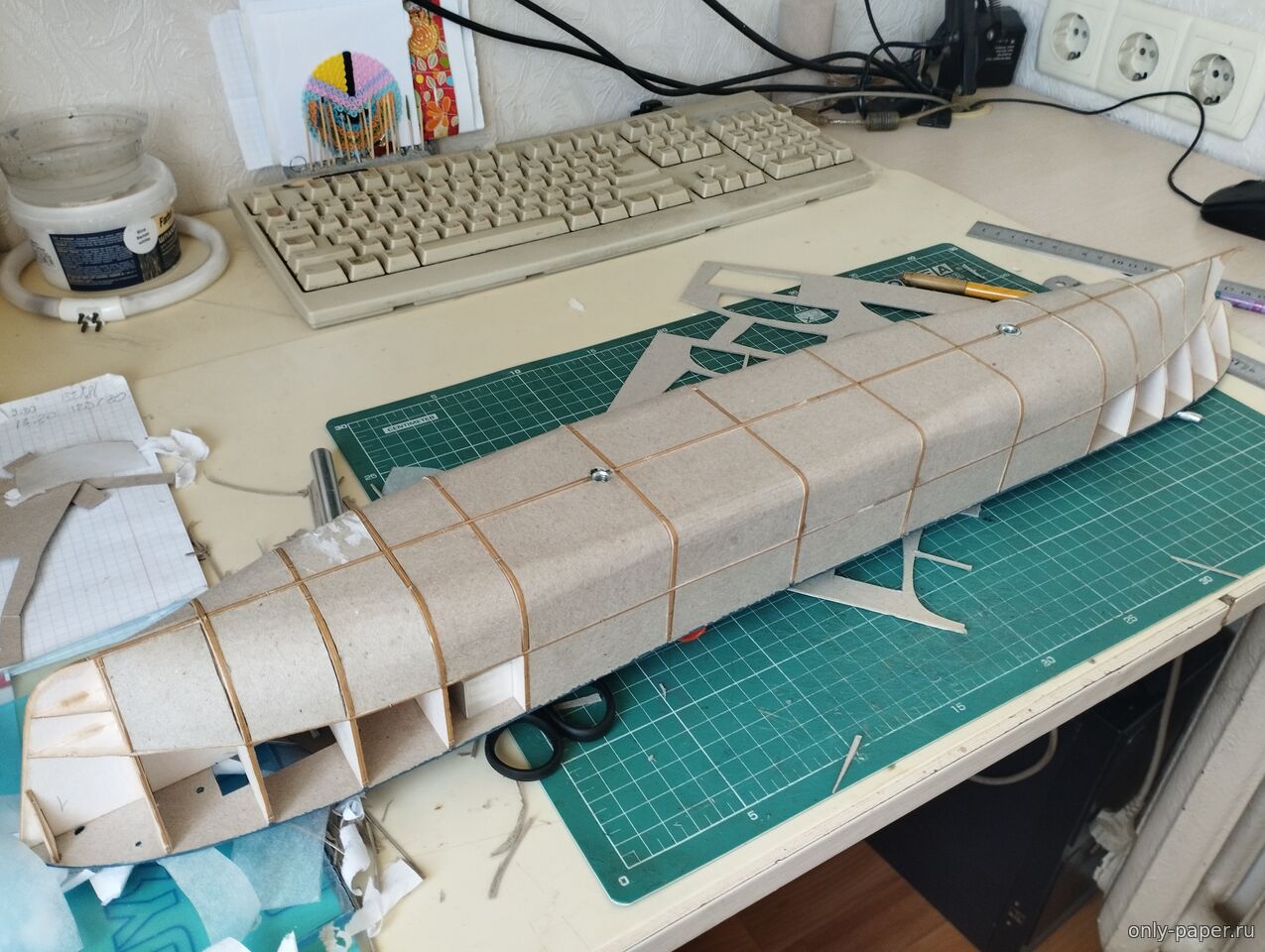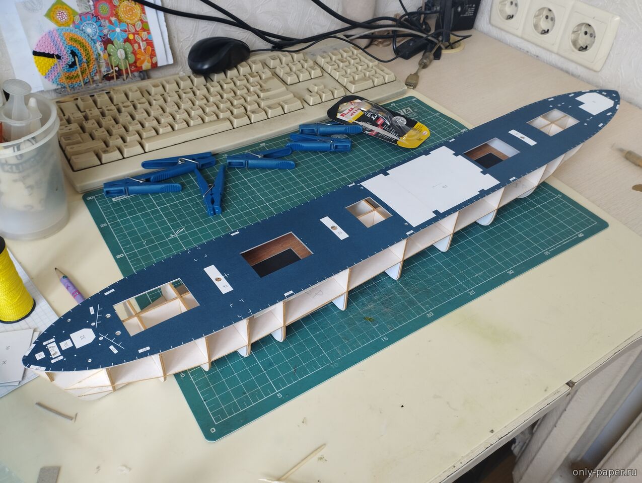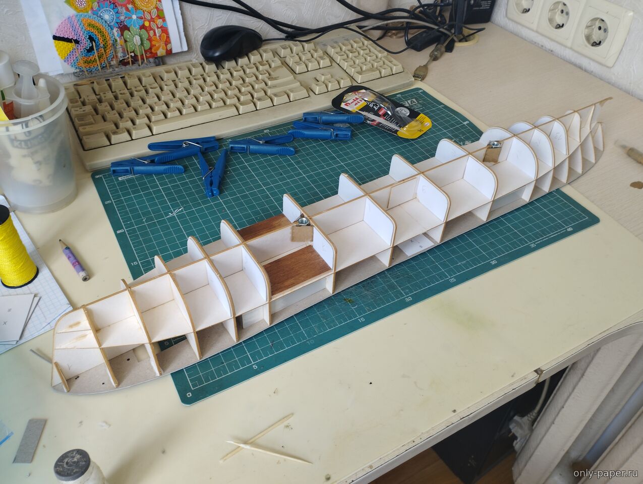 Собран каркас, наклеена палуба, добавлена ченовая обшивка из картона 1 мм.
