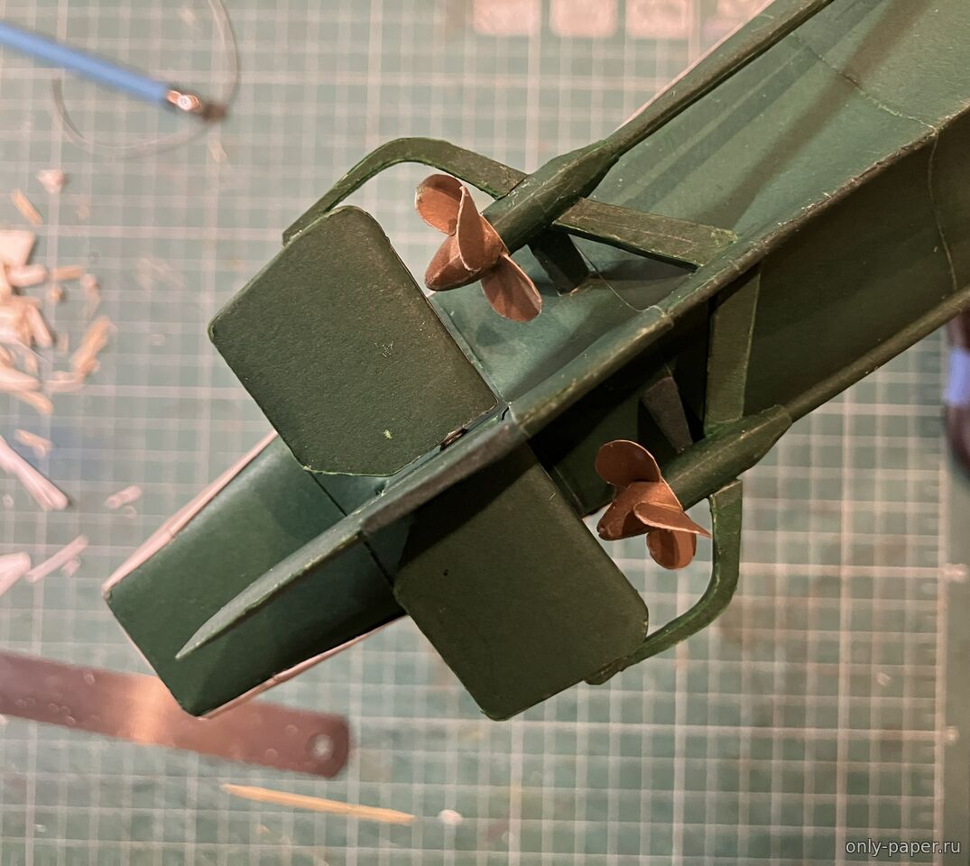 | Доделал винты и рули. Рули подклеил на тонкий картон и сделал коробчатую вставку. Клеил на ПВА + момент-кристалл