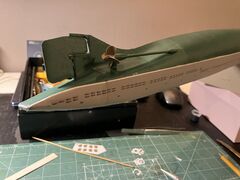 Кормовая часть обшивки спроектирована не очень, но хоть как-то. Разнотон опять же Стыки с палубой немного разбавленным акрилом оттонировал