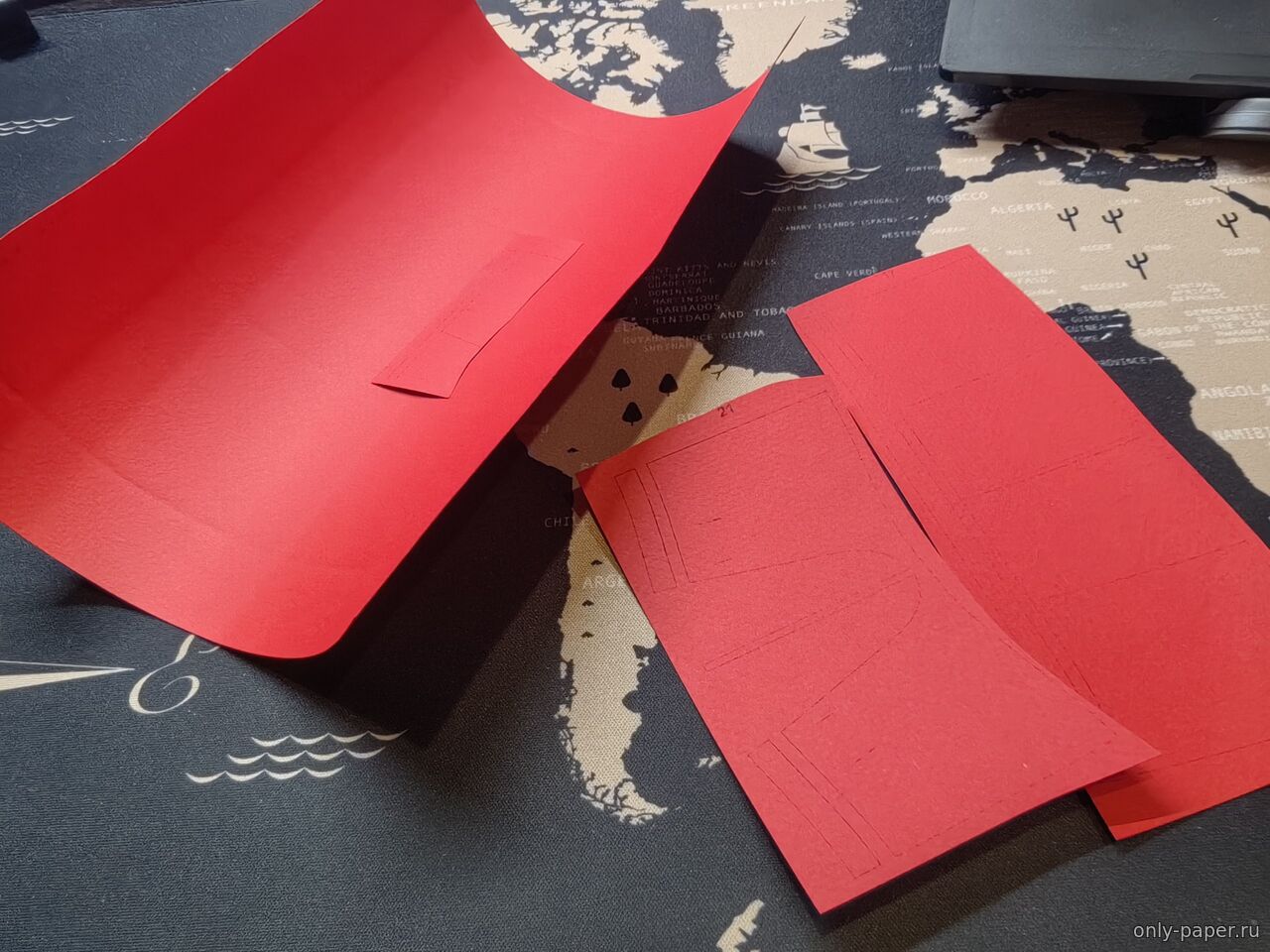 Но предварительно - пастельная бумага полный провал, взял из-за интереса - схавает ли мой принтер или нет... трехсотка - хорошо держит форму, но толще нужного + заломы при сгибании... Итого... пастельку можно пустить максимум на клапана... и то если будет нормально клеиться... трехсотку - на внутреннее усиление обшивки для увеличения жесткости...
