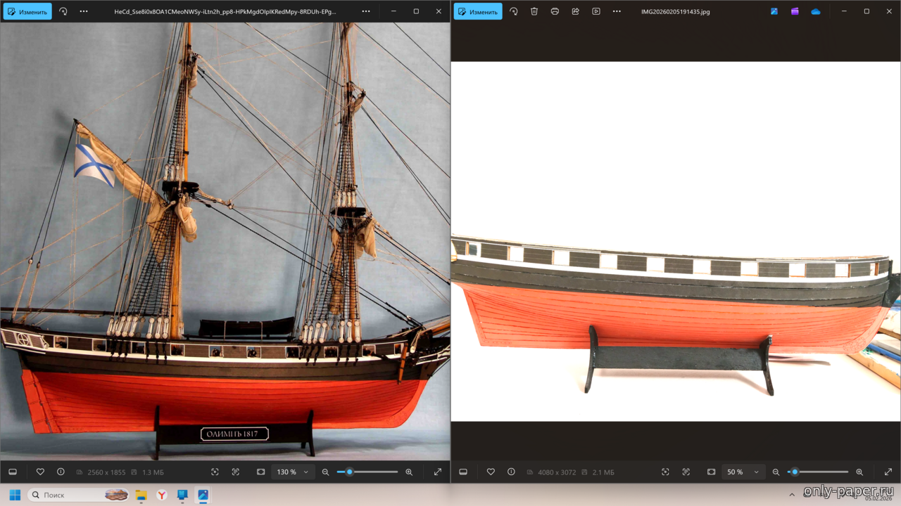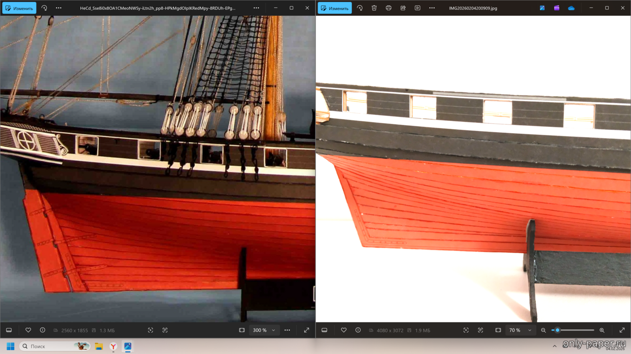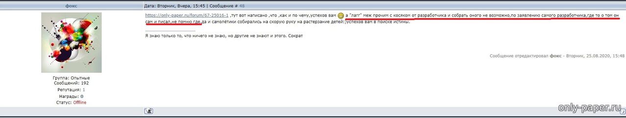 имеем еще одну готовую модель выполненную моделистом явно уровнем выше среднего и именно ту на муаре в фото которой Максим разглядел то что ему хотелось разглядеть, хотя сборка бумажной части и далека от идеала, но выполнена весьма не плохо