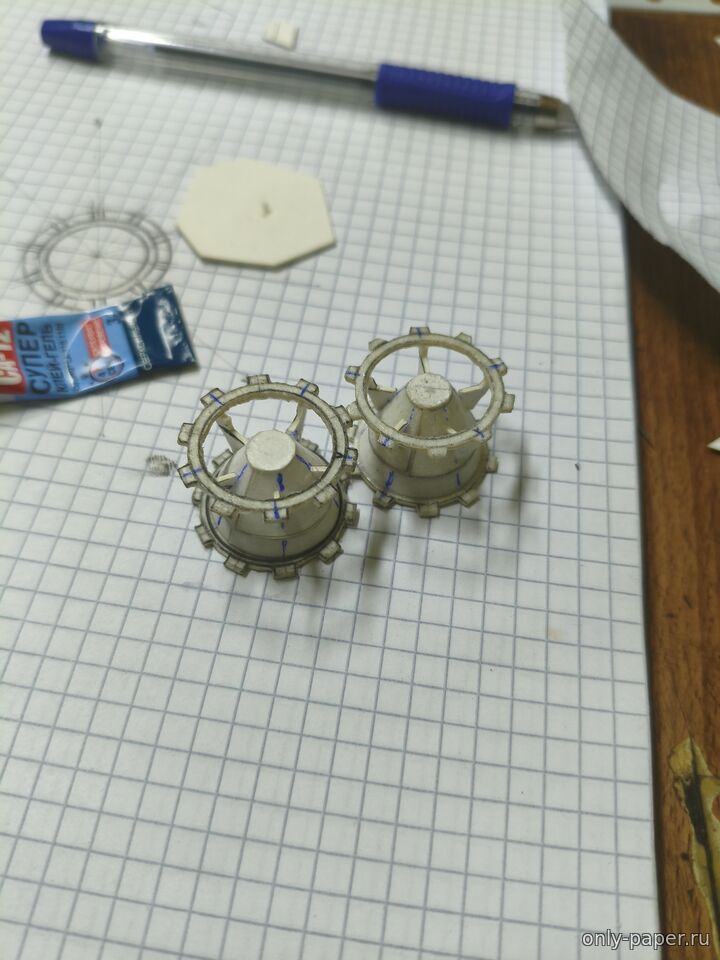 Так же, сделал приводные звезды, почему-то я попутал вид спиц, возможно насмотрелся разных фото материалов и осознал только тогда, когда собственно уже сделал. Пока вырезал и клеил, чуть не отдал Богу душу.