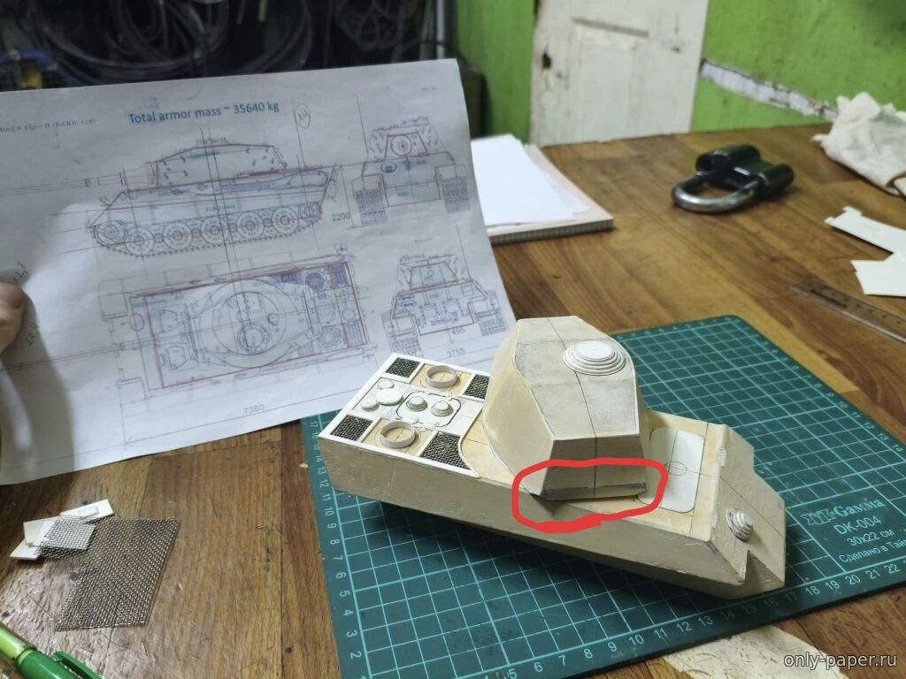 1. Вырезал лобовой лист башни без углублений в нижней части.