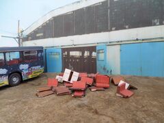 Весна . В боксах наводят порядок, выкинули сиденья от списанных автобусов: