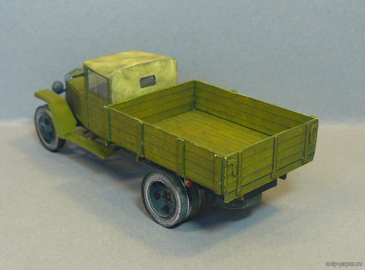 | Отлично получилось! Жалко, что не рассказал о прототипе - видно , что машина военного времени, крылья упрощённого образца, бампер отсутствует, фара одна, двери из дощечек, верх тентованный - в стране не хватало стали... +