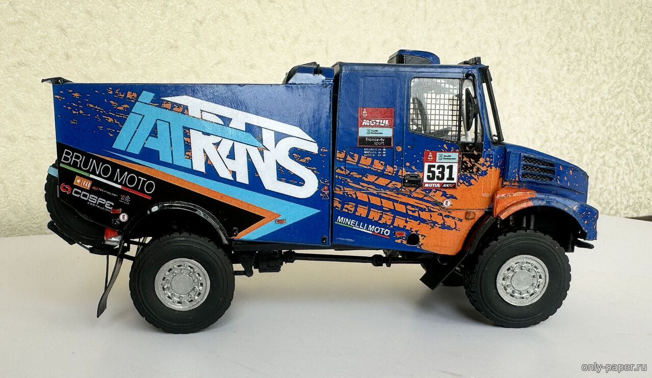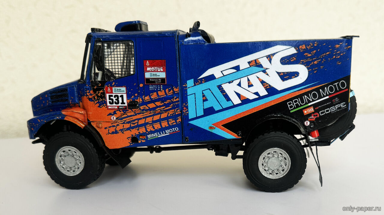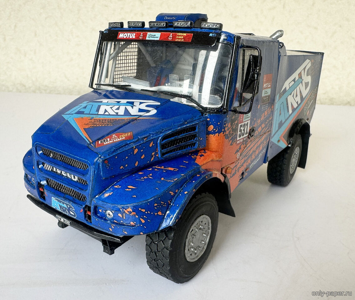 IVECO Power, прототип, разработан и построен компанией MM Technology , экспертным центром с центром производства и разработки в Праге, Чехия.Грузовик ItalTrans построен на гоночном шасси и оснащен двигателем IVECO. Его длина составляет 7 метров, ширина — 2,55 метра, колесная база — 4,2 метра, а масса — около 8000 килограммов . Как уже упоминалось, двигатель — IVECO в версии Cursor, шестицилиндровый, объемом 13 куб. см, мощностью 1100 лошадиных сил и максимальной скоростью 145 километров в час (требуемой нормативом). Кроме того, установлены барабанные тормоза с керамическими накладками, мосты Raba с дистанционной системой подкачки шин и 6-ступенчатая коробка передач Allison в версии Racing.