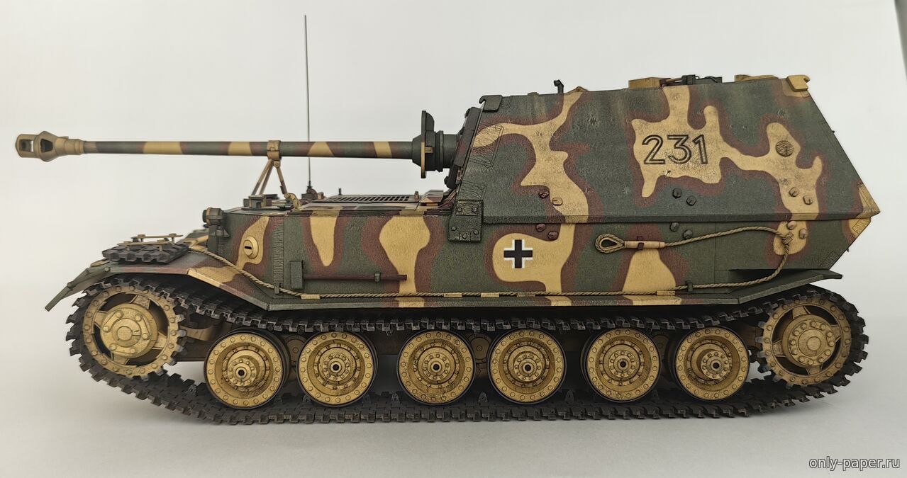 | Добрались, наконец, руки до оцифровки моделей на полке 😊 Фердинанда закончил в 2016 году. Сборка заняла около 3х лет. Гусеницы - лазерная резка. Красный квадрат на корме в журнале был белый. Красил по месту.