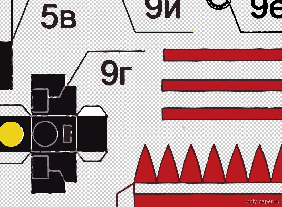 | Цитата VikMaf (  ) Большое пожелание убрать чёрный с контуров деталей. Понимаю ваше желание. Но в данном случае делать этого не стану. Основа планируется не белая бумага а серый металлик, другой цвет на ней не будет видно практически и линии и без того очень тонкие. Да фона кроме красного нет, а там где он имеется линии еще в 2 раза тоньше. Сейчас кое что поправлю и выложу в открытый доступ.