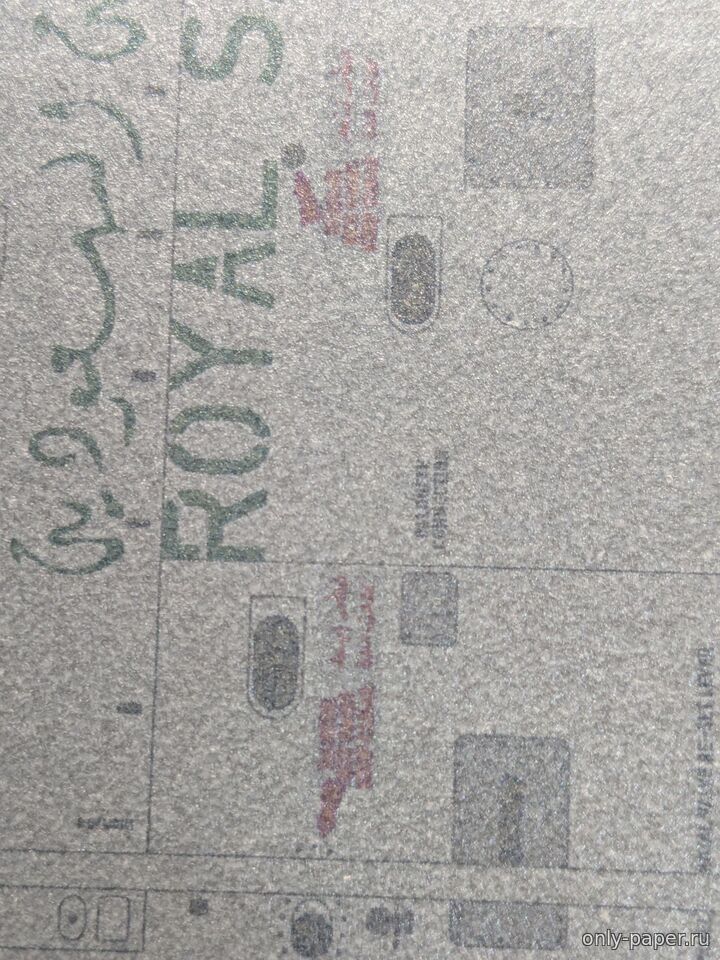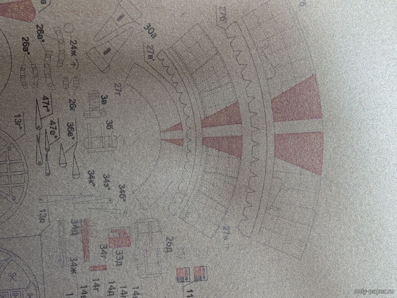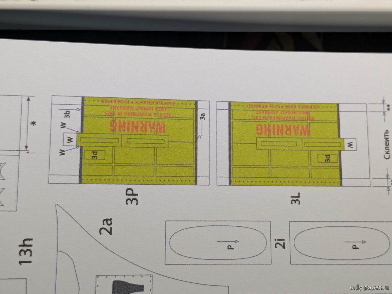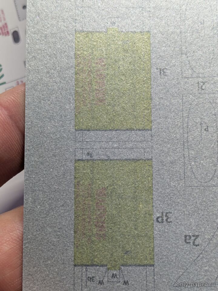 |  На листе 5 расположенны данные детали. Вроде симметричны, НО одну требуется подклеить на картон 0.5 мм а вторую нет. В инструкции вообще не нашел этих номеров.