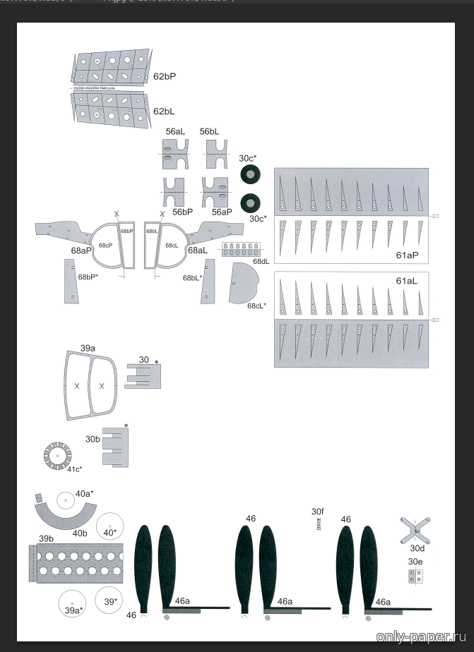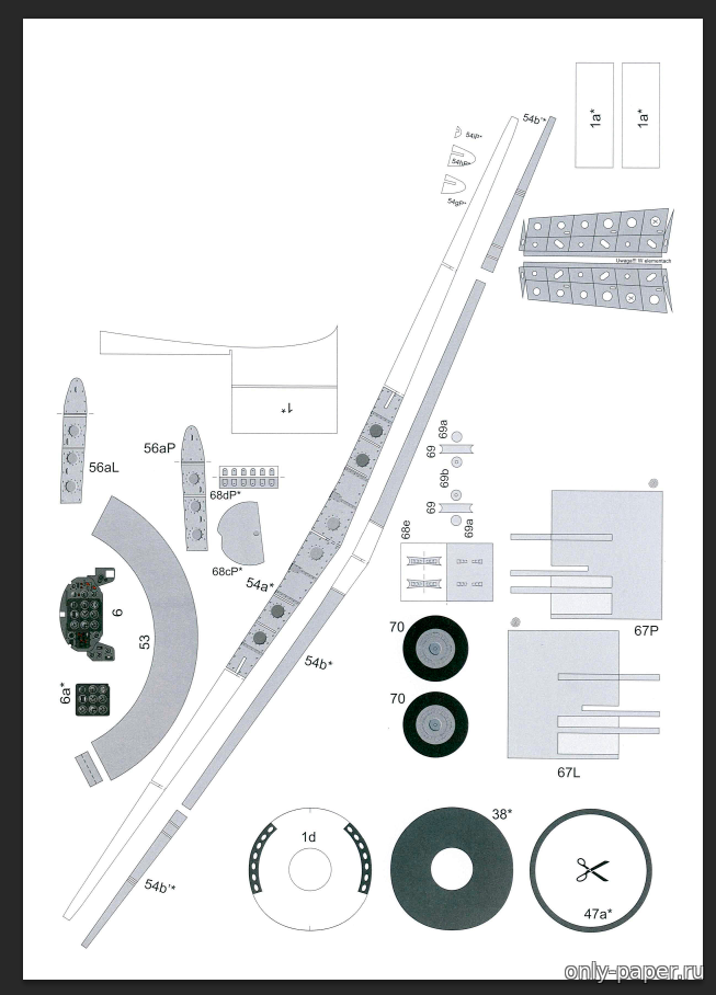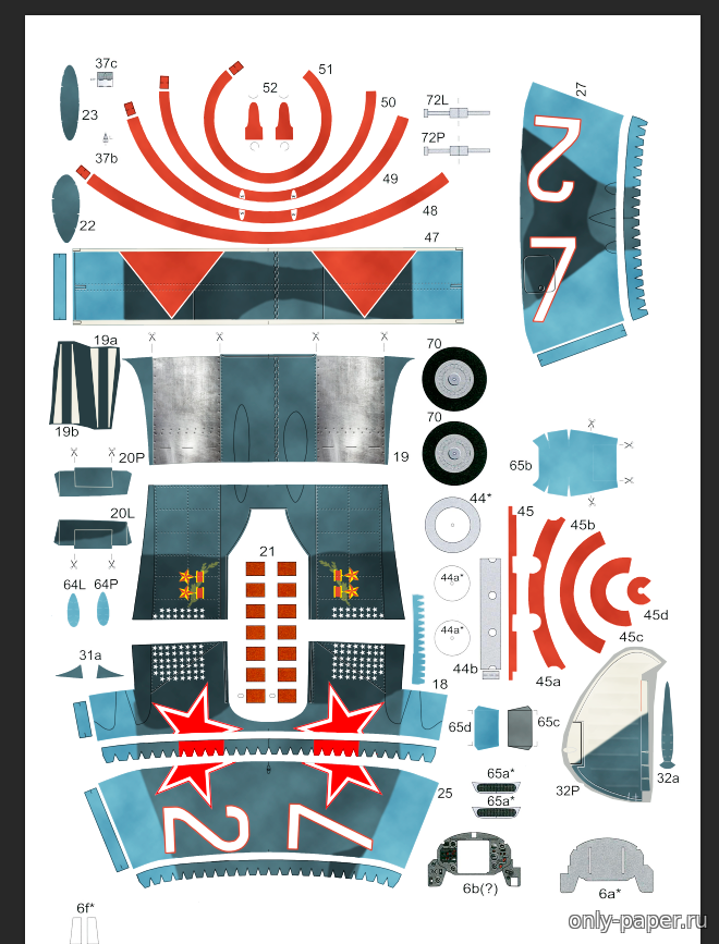 | Касаемо остальных листиков... По своему обычаю все позаливал белым фоном в отдельном слое, а потом повырезал в БЕЛОМ тё участки выкроек, которые не собираюсь рисовать.... А там ниши и стойки шасси, детали кокпита, детали крыла, элеронов, рулей высоты итд итп...