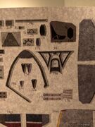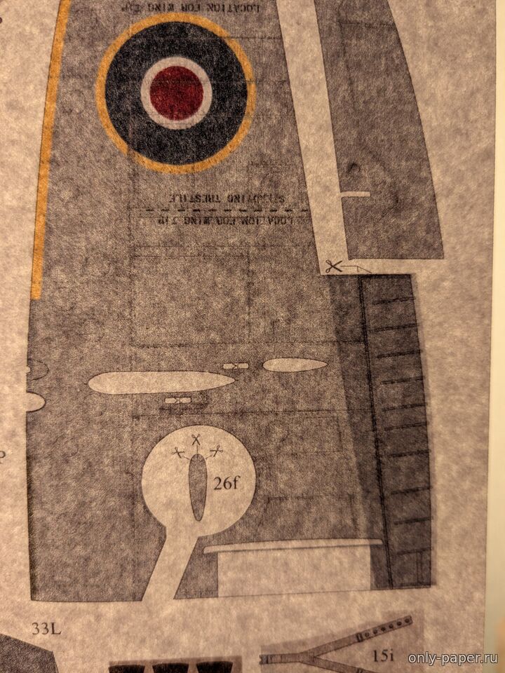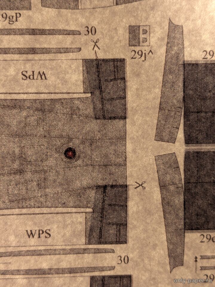 По центральной секции (дет. 26) маленькие закраски уехали вверх по листу примерно на миллиметр. Сзади, что относится к закрылкам, сошлось хорошо, на мой взгляд