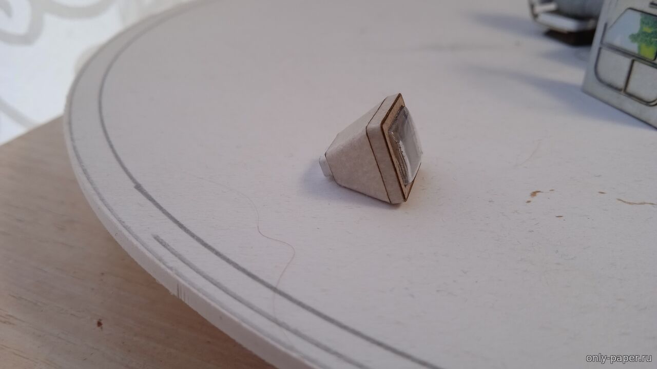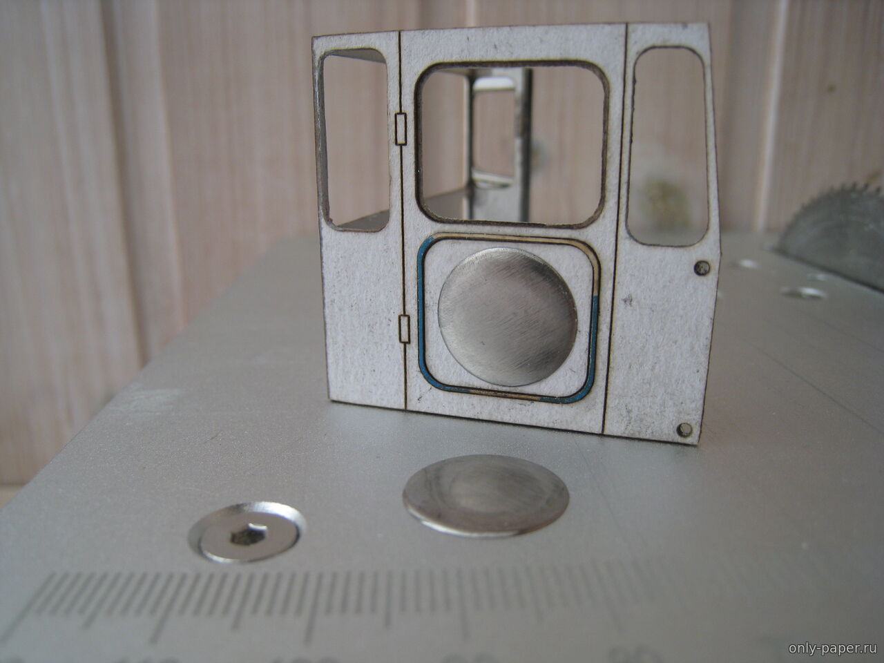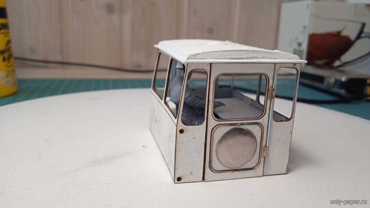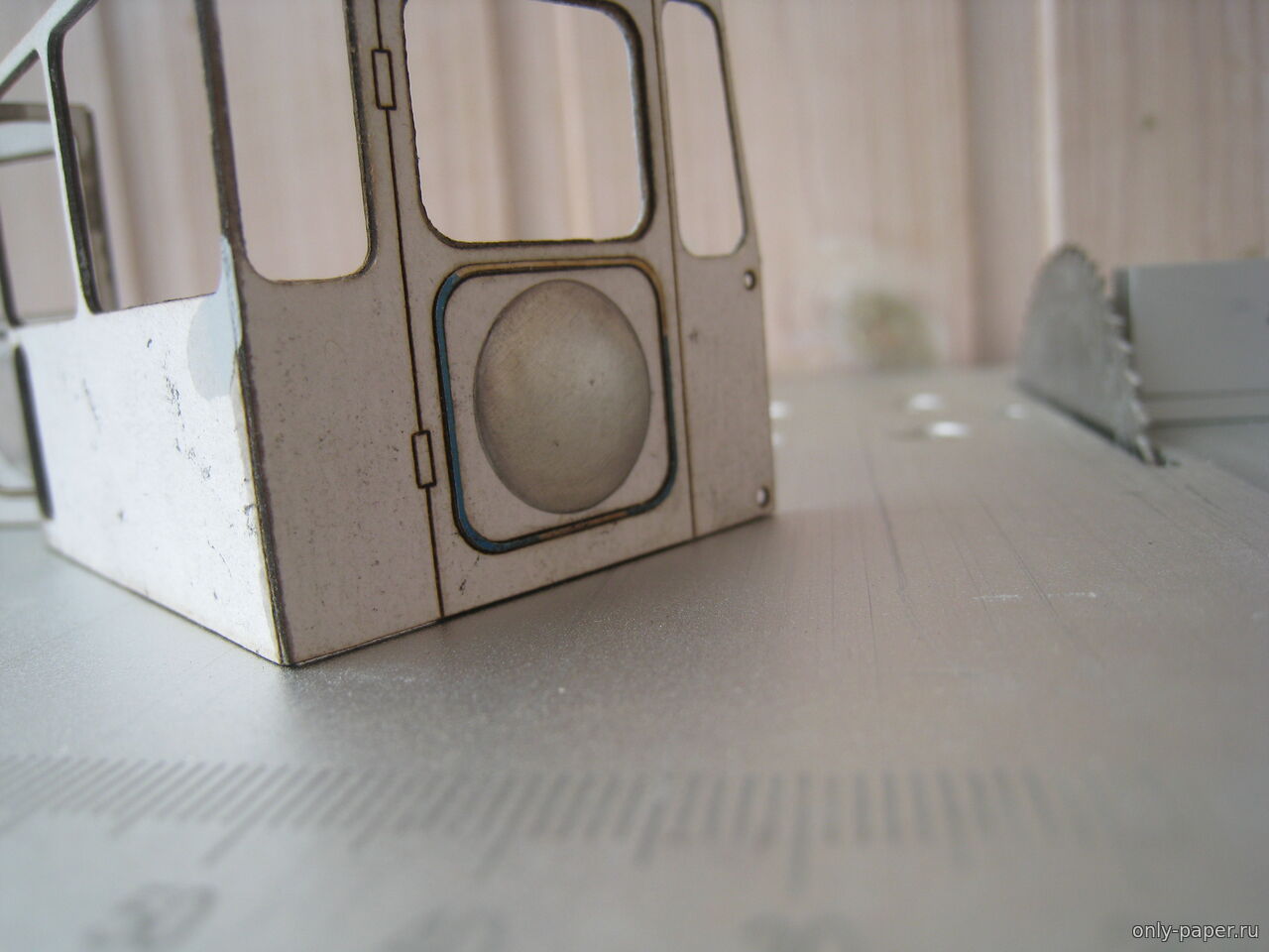 Захотелось, что бы на крыше были фары-прожекторы. Скопировал фары от Форд-3000 от Моделиста. Стекла гнул из рифлёной закладки для книг, типа переливашки. отражатель красил хром-маркером.